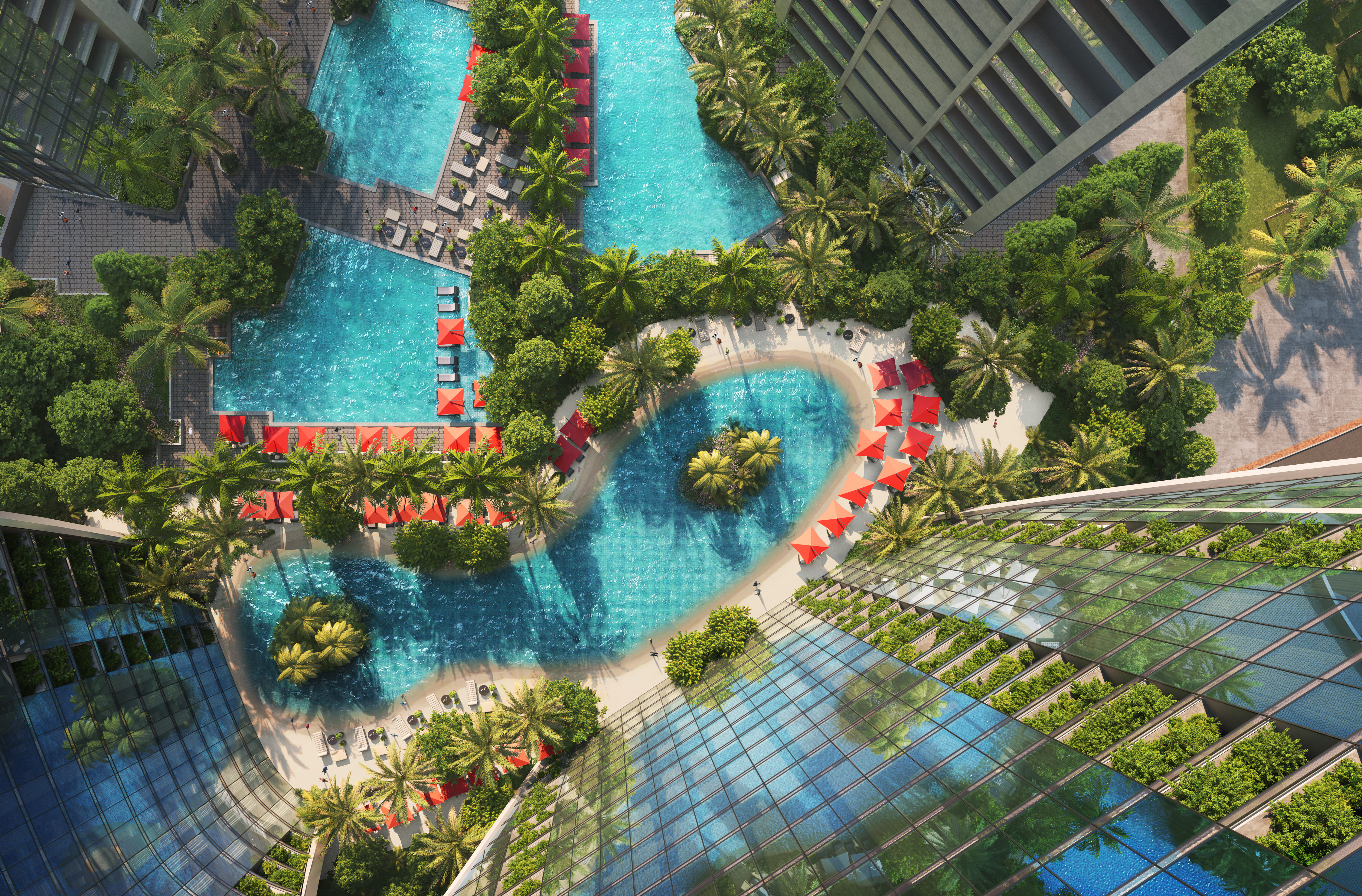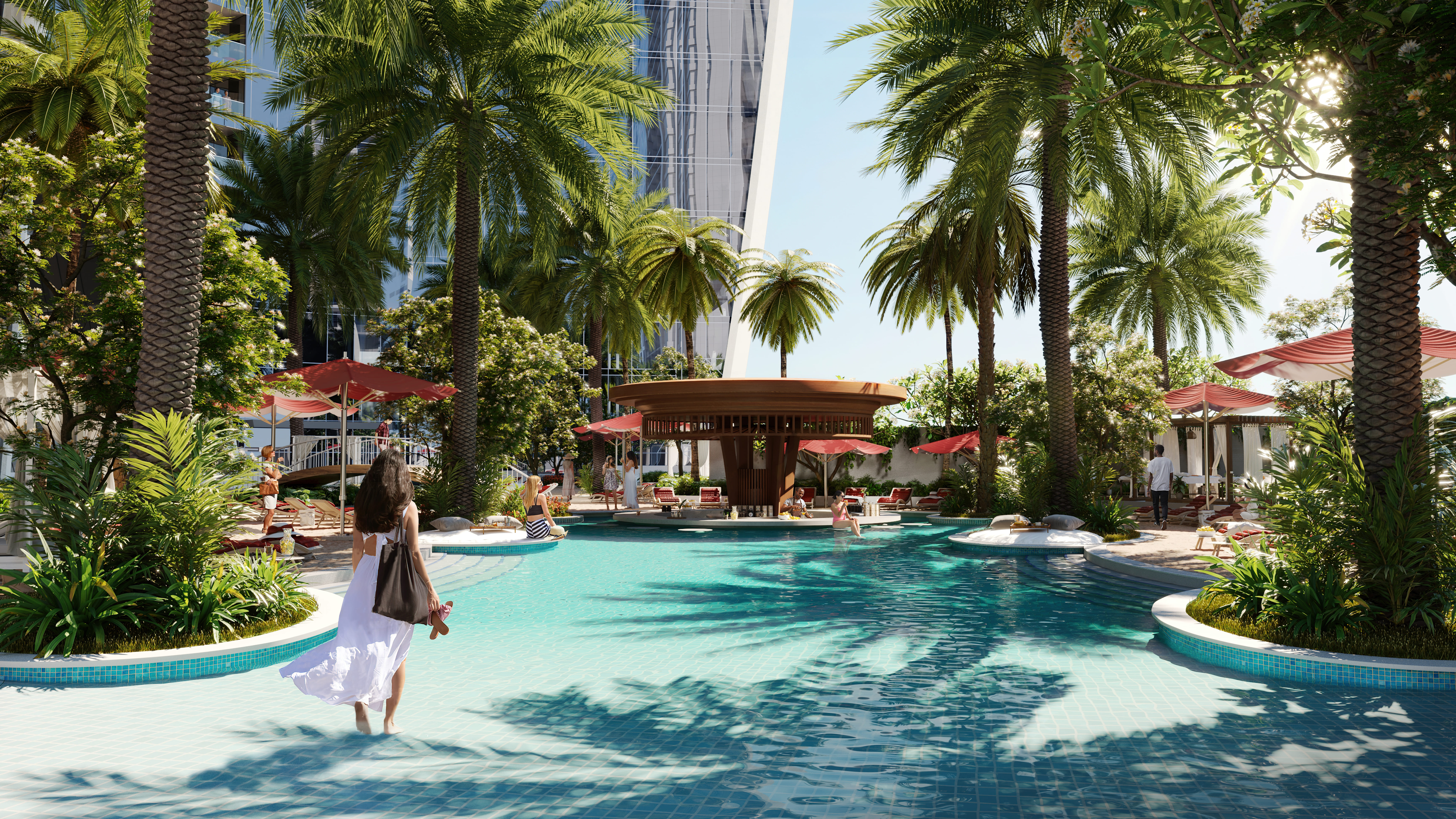 The development presents access to a luxury tower, taking inspiration from the abundance of emeralds and diamonds, which is reflected throughout the façade, surrounded by flawless splendour. Stroll in the podium of exotic trees and flowers before entering the development, where the enchanted gardens ascend the building.